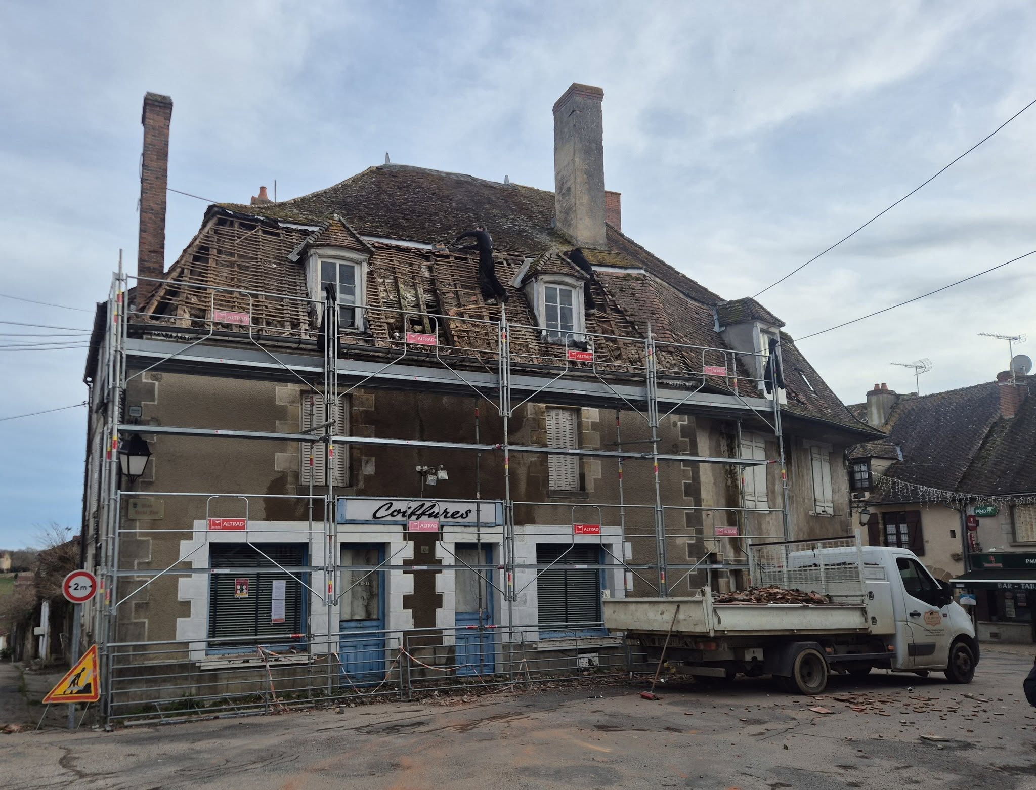 Après plusieurs années de démarche pour mener correctement l’opération, les travaux de sécurisation de la toiture place Hervé Faye ont enfin démarré. La circulation est encore ouverte mais devra être interrompue lorsque la deuxième partie sera échafaudée, vous serez informés des dates. Merci à l’entreprise Valtitude de couverture qui nous accompagne dans cette démarche, ainsi que les services de la DDT.