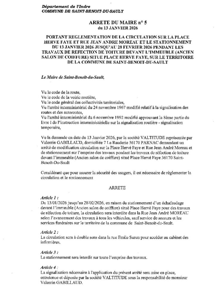 L’avenir du bien pose également question. Il ne s’agit pas de réaliser des travaux d’envergure pour laisser l’abandon se poursuivre. Nous avons analysé les recours possibles et avons, avec l’appui de nos collègues de la mairie d’Argenton-sur-Creuse, identifié la possibilité de parvenir à une expropriation dans le cadre d’une procédure « d’état d’abandon manifeste ». Suivant l’opportunité, la municipalité pourra devenir propriétaire de ce bien, de sorte à résoudre la situation et faire revivre cet espace central. Après cela, vente du bien pour un projet, ouverture d’un commerce, installation d’un équipement sont des opportunités possibles à examiner. Pour l’heure cette procédure n’a pas été ouverte dès lors que les travaux ne sont pas terminés.